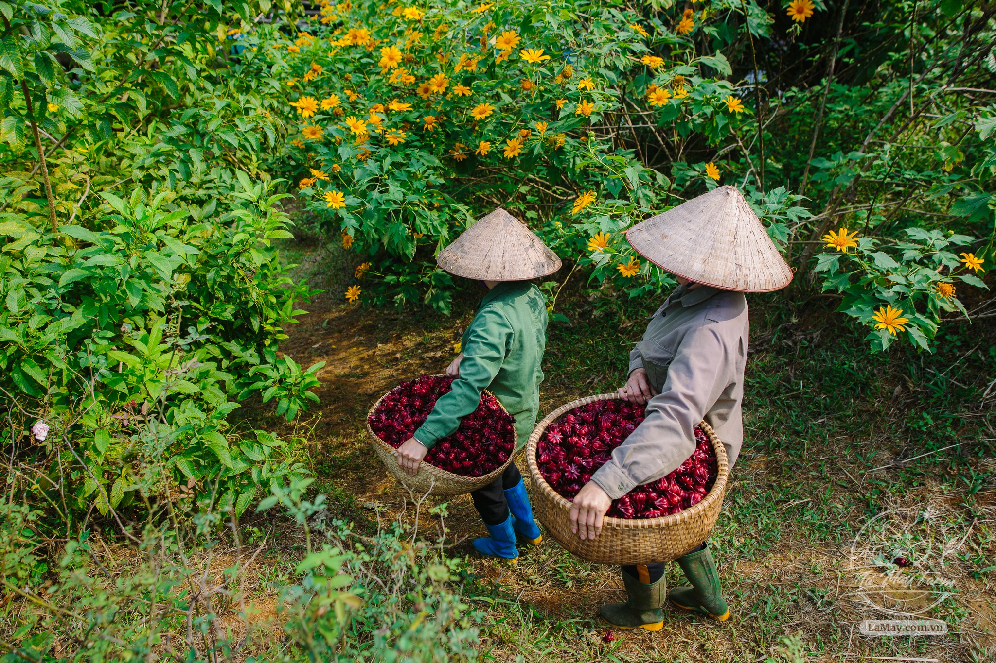 Những năm trước đây (từ 2020-2024), Mứt hibiscus được làm từ hibiscus trồng tại farm Lá Mây. Từ vụ 2025 (Tết 2026), Lá Mây dùng nguyên liệu nhập từ vườn của đối tác với tiêu chuẩn: Hibiscus trồng thuận tự nhiên, không phân thuốc, quả tươi về đến xưởng dưới 24h.